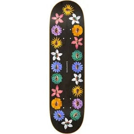 Lovesick Deck Team Orange Sunshine (8.5) brings a hypnotic bloom to your setup: a deep-black veneer framed by a ring of multi-colored flowers, each one set with a watchful eye that feels part collage, part daydream. The medium concave and modern popsicle shape keep things dependable from curbs in Duarte to long lines through Claremont’s neighborhoods, while the 8.5 width hits that sweet spot for stability without killing your flick. Produced by BBS MFG for pro-level press consistency, this one skates as good as it looks—clean edges, even plies, and a lively snap you’ll notice the first push down Myrtle or at a late session in South Pas.